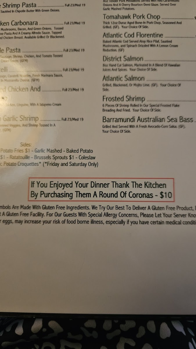 Shrimp, Crab, Green Onions, And Tomatoes. Sautéed In Olive Oil And Tossed With Linguine Noodles. Garnished With Basil Chiffonade. Choice Of A Fresh Marinara Sauce Or Alfredo Sauce. (GFM)
